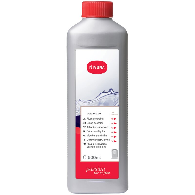 Odkamieniacz w płynie NIRK 703 przeznaczony dla modeli CafeRomatica o pojemności 500 ml - profesjonalna pielęgnacja i solidna konserwacja. Twój automatyczny ekspres do kawy marki NIVONA posiada zintegrowany program odkamieniania.