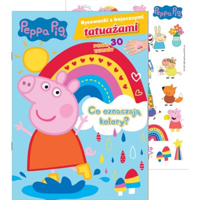Otwórz kolorowy świat Peppy i daj się porwać twórczej zabawie! W środku znajdziesz nie tylko bajecznie barwne zadania, zagadki i rysowanki, ale też ponad 30 zmywalnych tatuaży z bohaterami uwielbianego serialu! Dowiedz się, co oznaczają kolory, poznaj ich ukryte znaczenie i poćwicz kreatywność...