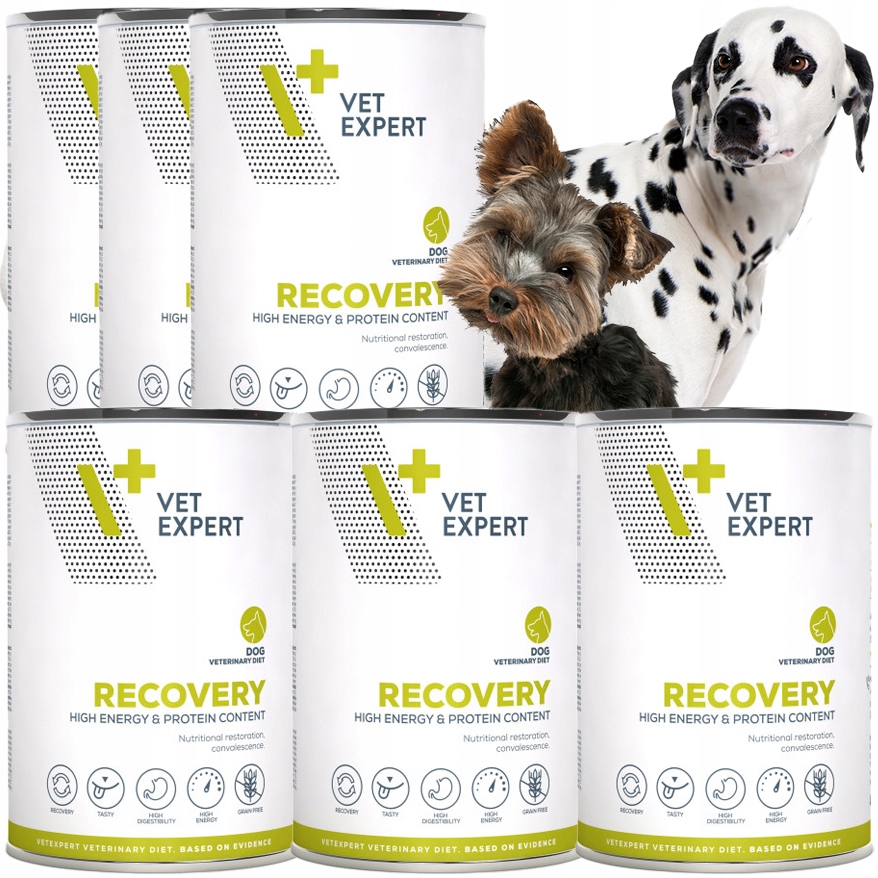 - Vet Expert Recovery kurczak – lepszy wybór u psów preferujących smak kurczaka lub z niechęcią do aromatu ryb.